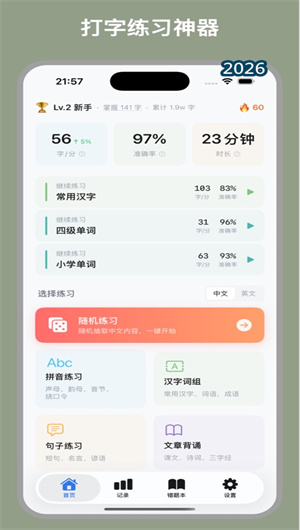 小妙打字通动态记录每一次练习中的错误字词,生成专属错题本。针对个人薄弱项进行反复强化训练,从源头消灭错别字,不留知识盲区。同时自动统计每日练习时长、字数及准确率曲线,多维度数据分析成长轨迹,让坚持更有动力。