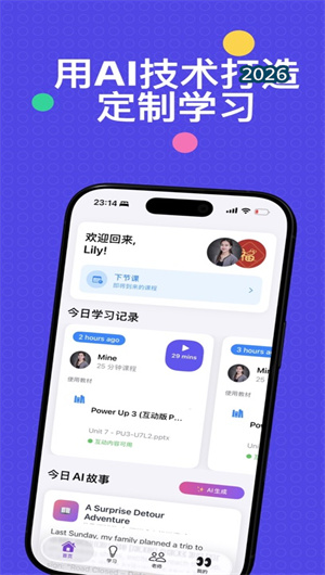 “世桥外教”拒绝“千人一面”的课程体系。在每位学习者入学之初,系统会通过一套科学的入学测试,从听力、口语、阅读、语法等多个维度评估其语言能力,并结合其学习目标(如“出国旅游”、“职场晋升”、“留学备考”)生成详细的学习画像。基于此,平台会为每一位用户量身定制专属学习计划和学习路径,推荐匹配其水平和兴趣的外教、课程主题及AI练习内容。学习过程中的每一次互动数据——外教课的反馈、AI练习的成绩、学习时长等,都会被记录并用于动态调整学习计划,确保学习路径始终处于最优化状态。
