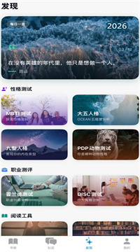 2、MBTI量表不只做测试,还会根据人格给你开书单,内向蓝绿人格收到的是安静散文,火红外向型直接甩脱口秀合集