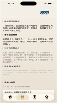 1、随机分配“看守”与“囚徒”身份,看守能偷改一次灯态,囚徒却要拼出全员进房记录,立场完全对立。