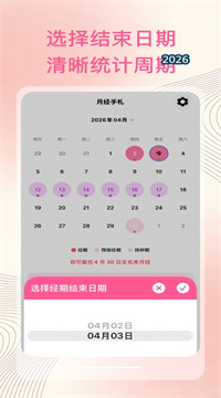 2、一键式日历记录与多维体征标记:在简洁的月度日历视图上,用户轻点任意日期即可快速记录例假起止状态,同时以点选方式补充当日的经血量级、痛经程度、疲劳感、情绪波动以及其他身体症状,所有记录操作在三秒内即可完成,彻底告别繁琐的表单填写流程。
