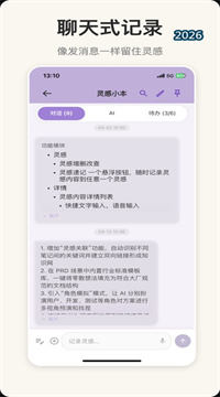 1、记录方式多样,就像平时聊天一样。文字、图片、文件都能随手记下,语音输入还能自动转文字,用起来特别方便。